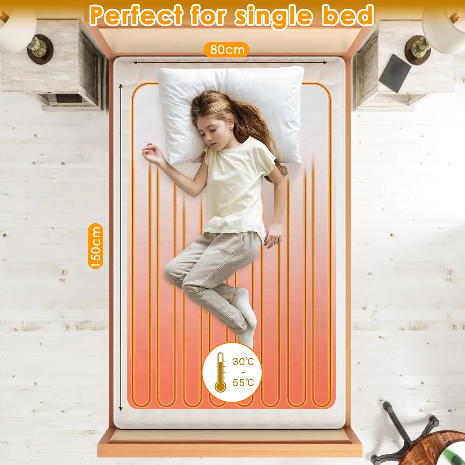 Electric Heated Mattress Pad – 150×80 cm, 100W Fast Heating Bed Warmer, 6 Heat Levels, 8-Hour Auto Off, Machine Washable